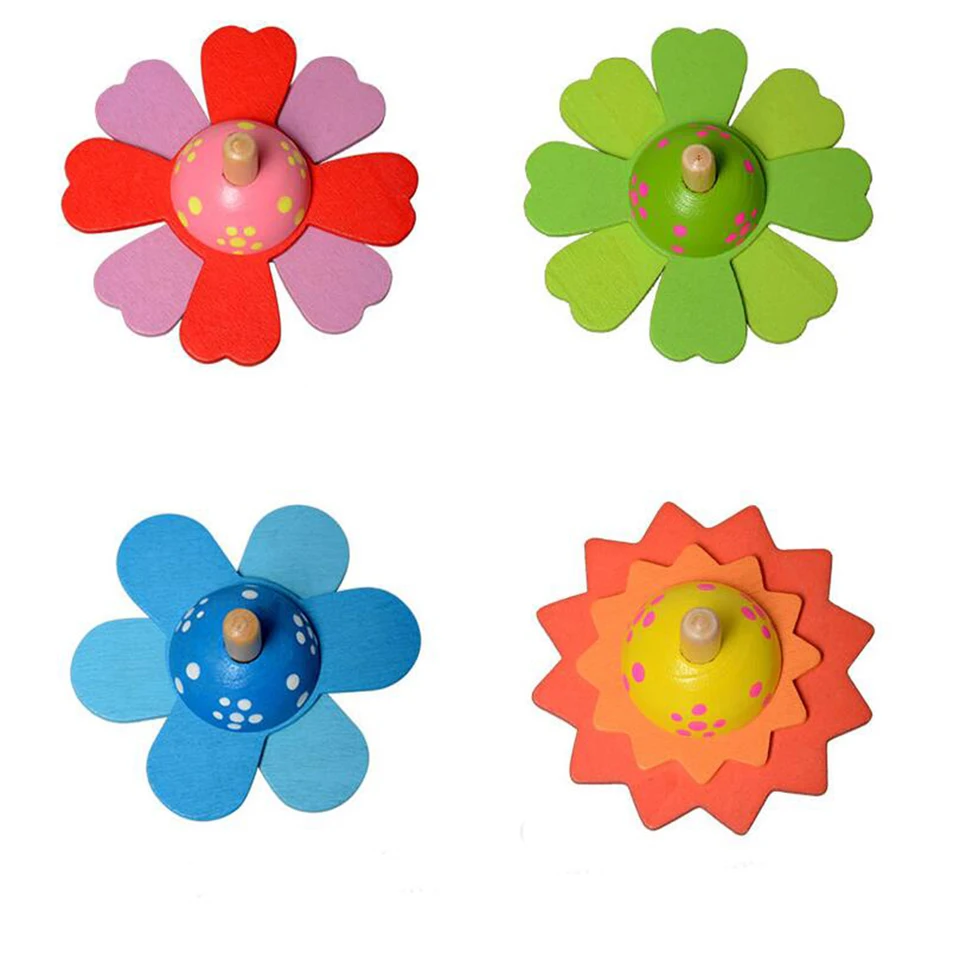 1Pc Nette Holz Blumen Gemalt Kreisel Drehen Kinder Holz Klassische Spielzeug kinder Pädagogisches Spielzeug Geschenk|Kreisel| - AliExpress